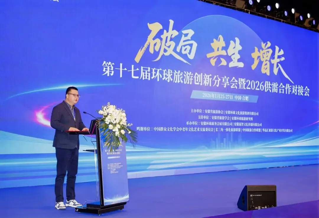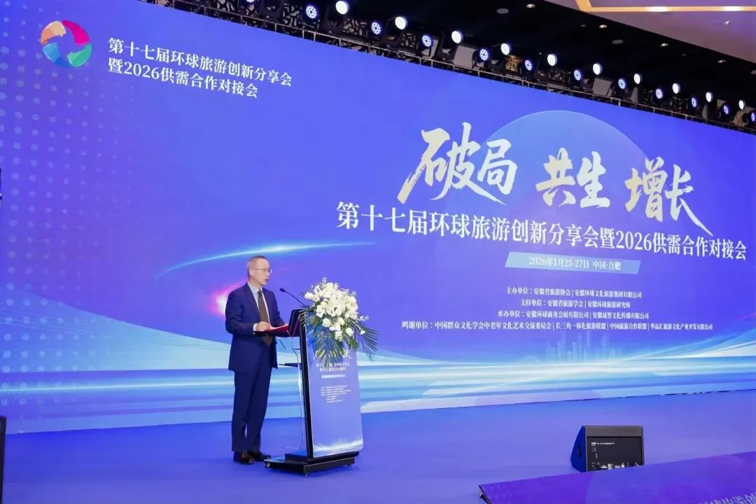 1月26日上午,由安徽省旅游协会与安徽环球文化旅游集团联合主办的“第十七届环球旅游创新分享会暨2026供需合作对接会”在合肥盛大启幕。大会以 “破局·共生·增长” 为主题,汇聚了来自全国文旅行业的领导、专家、企业家及一线从业者,共同探讨行业新趋势、新路径、新合作。