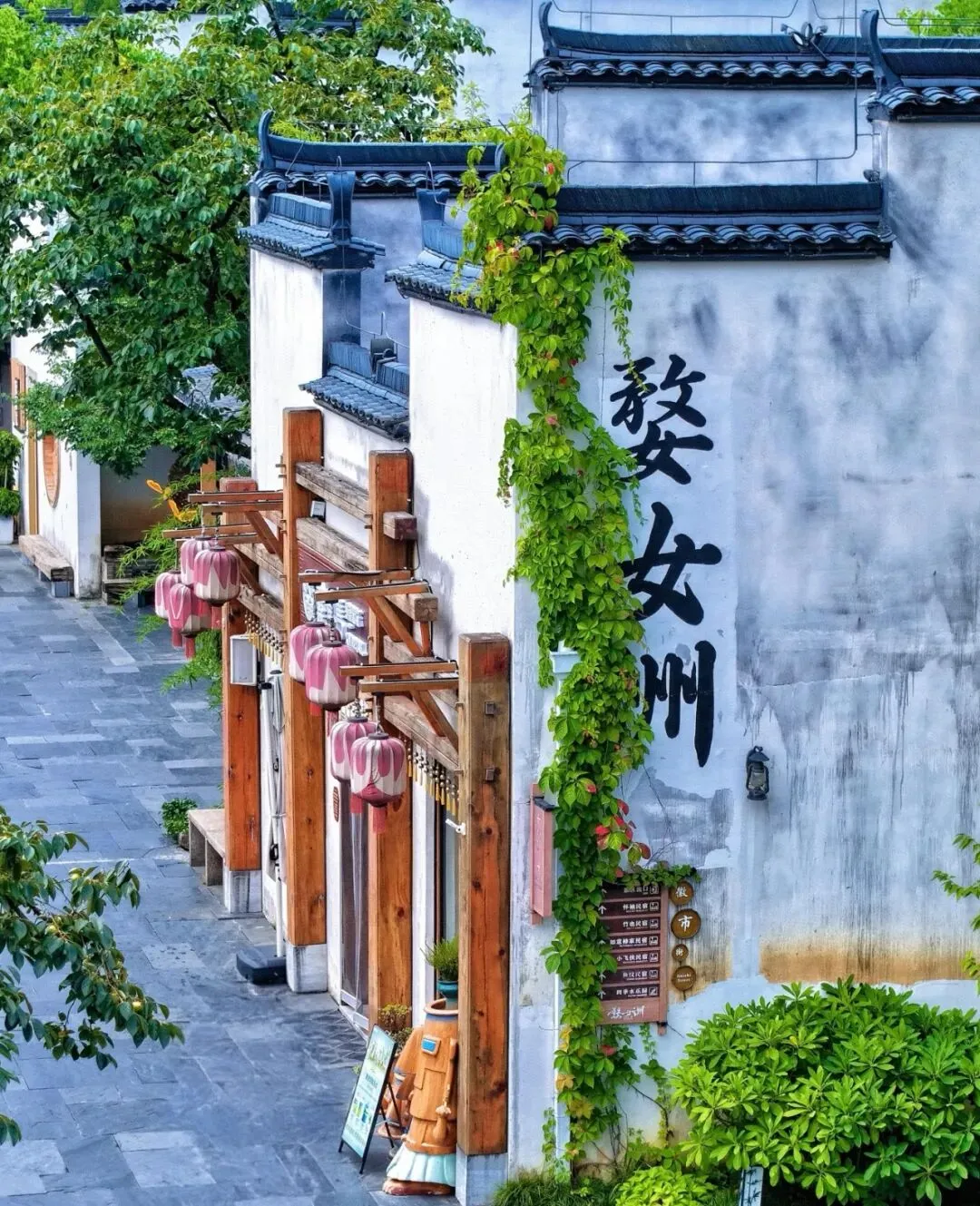 被誉为“中国最美乡村”的婺女洲,以“婺女飞天”的古老传说为魂,将徽派建筑与江南水乡完美融合。白日里,青石板路蜿蜒曲折,马头墙在阳光下错落有致,摇橹船划过碧波,惊起涟漪圈圈,两岸商铺林立,竹编、剪纸等非遗手作琳琅满目。