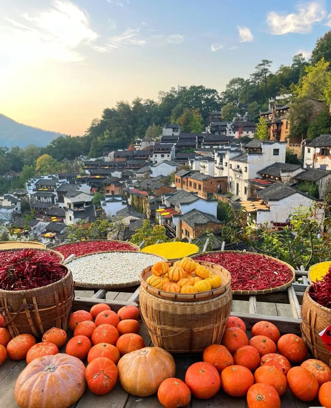 这里的“晒秋”农俗堪称视觉盛宴,每到丰收时节,村民们将辣椒、玉米、稻谷等农作物铺在竹匾里晾晒,五颜六色的谷物与古村建筑交织,构成一幅绚丽的立体民俗画。