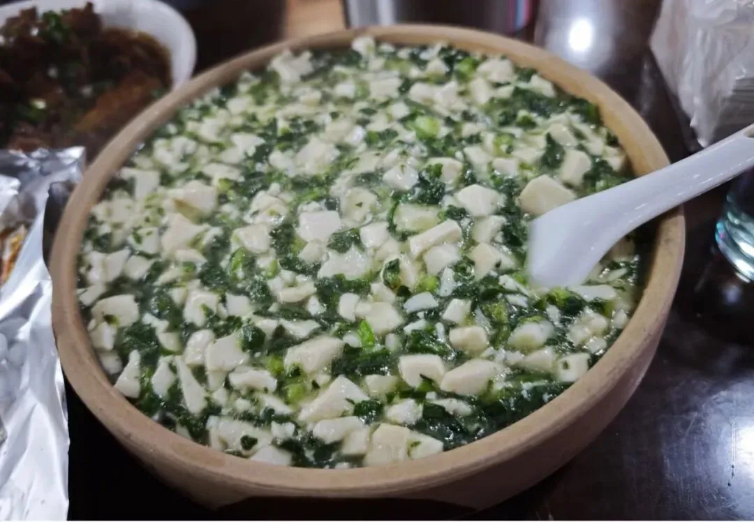 婺源的经典家常菜,将豆腐切成小块,搭配豆芽、干豆角、香菇、笋干等食材,加入高汤煮至浓稠,撒上葱花、香油调味。口感鲜香软糯,豆腐的嫩滑与配菜的爽脆相得益彰,是年夜饭桌上的必备菜品,也体现了婺源人的饮食智慧。