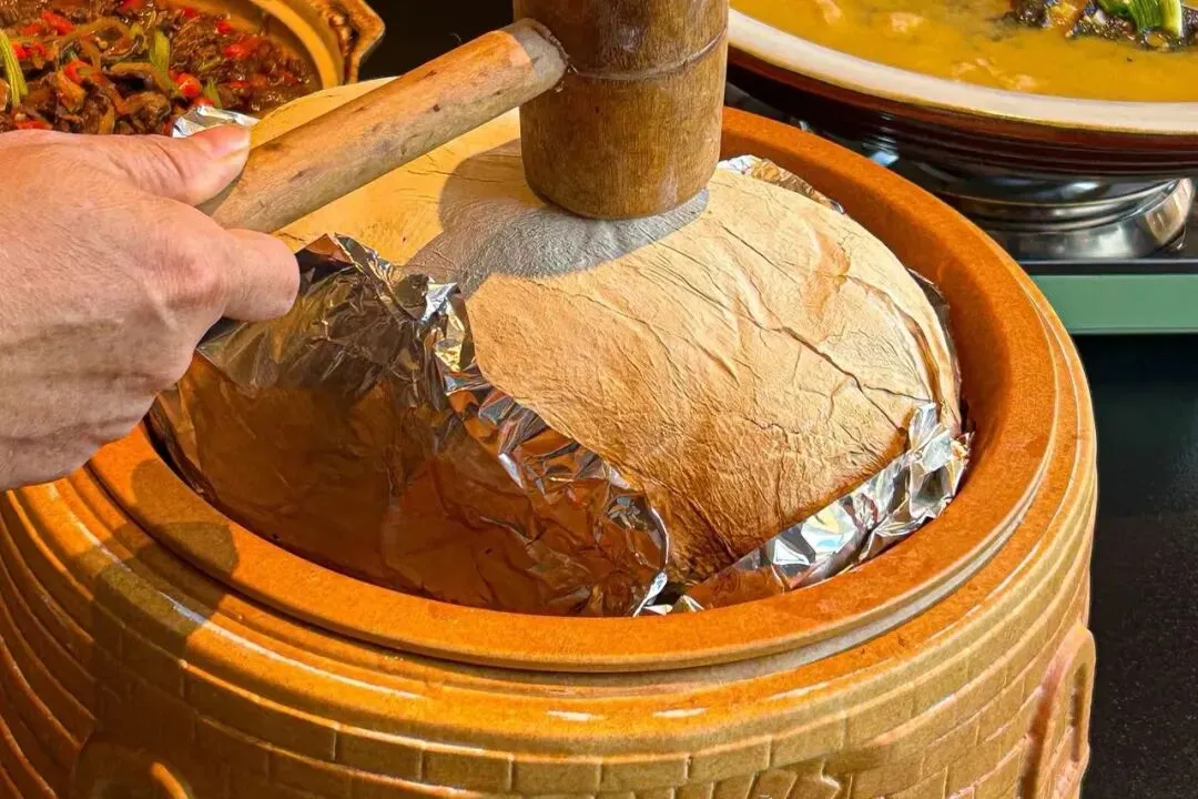 “瓷都”的特色美食,将土鸡处理干净后,用荷叶、瓷泥包裹严实,放入窑中与瓷器同烧。经过高温烘烤,鸡肉吸收了荷叶的清香与瓷泥的矿物质,肉质鲜嫩多汁,香气扑鼻,堪称“土菜精做”的典范。