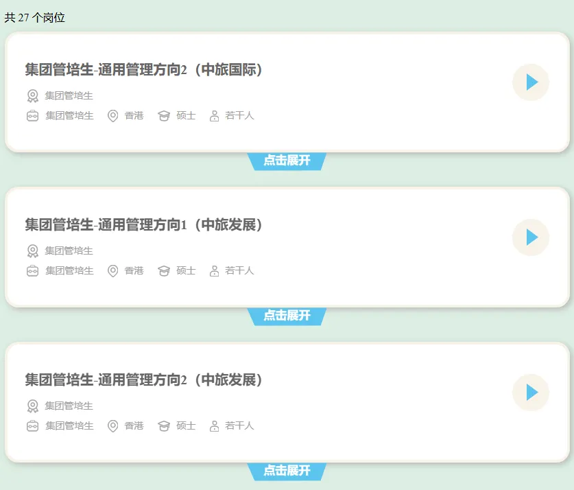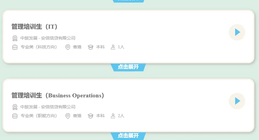 作为一家由中央直接管理的国有重要骨干企业,集团总部位于香港,也是目前唯一以旅游为主业的央企,拥有近百年历史。 集团旗下覆盖港中旅、国旅、中免等知名品牌,业务涉及旅游、免税、酒店、邮轮、金融、地产等八大领域,在全球约30个国家和地区均有布局,总资产超过2100亿元,员工规模约4.5万人,综合实力雄厚。 招聘岗位分为三大类:集团管培生、专业类岗位与操作类岗位。 其中管培生岗位不要求粤语能力,并可支持短期签证,入职七年后公司将协助申请香港永居身份。应届生年薪最高可达45万港币,在香港这样的国际都市具有较强竞争力。
