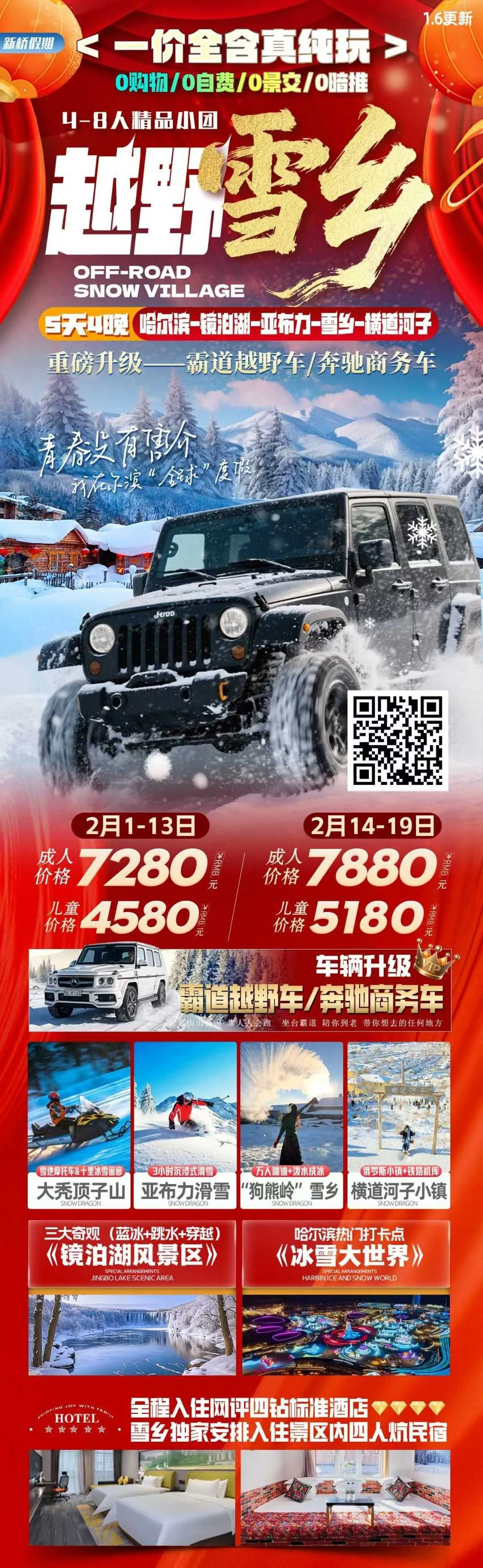 🚙【越野雪乡】✈哈尔滨往返5日游