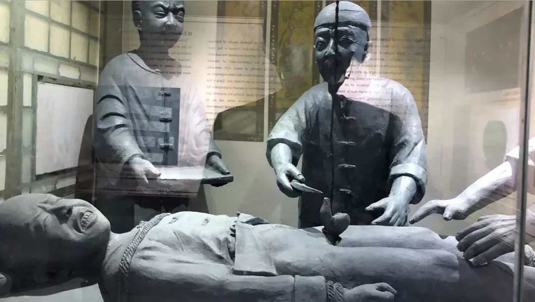 整个景区由两部分组成,第一个部分是介绍中国宦官亚文化的博物馆:里面最重磅的展区就是讲阉割的手法。这些细节不便说,你们看看图就明白了。记得小时候还有与肉身分离的宦官宝贝儿盒,但在现在的展区里没有摆放。