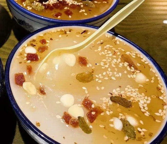 可能一提起茶汤,你就会想起各个景点里拿速溶粉和龙头壶冲的不明液体;但茶汤李不一样,就拿它的冰镇杏仁茶来说,掺着红果片、桂花和葡萄干的茶液与茶面泾渭分明,吃起来相当爽口。