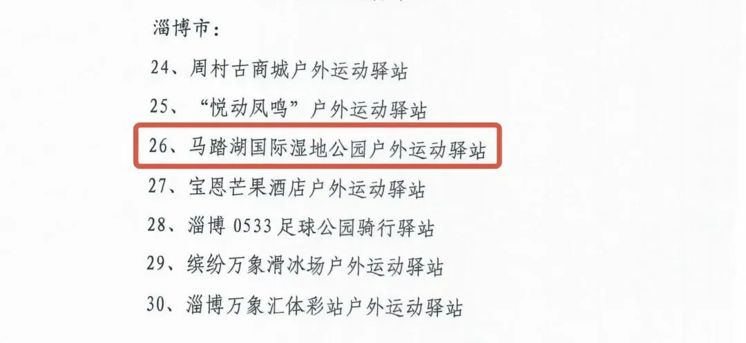 近日,山东文旅马踏湖旅游区(原马踏湖国家湿地公园)再迎高光时刻——马踏湖入选2025年“好运山东”体育消费创新场景重点培育项目和2025年“好运⼭东”户外运动驿站,标志着马踏湖在“体育+文旅”融合发展方面迈上了新台阶。