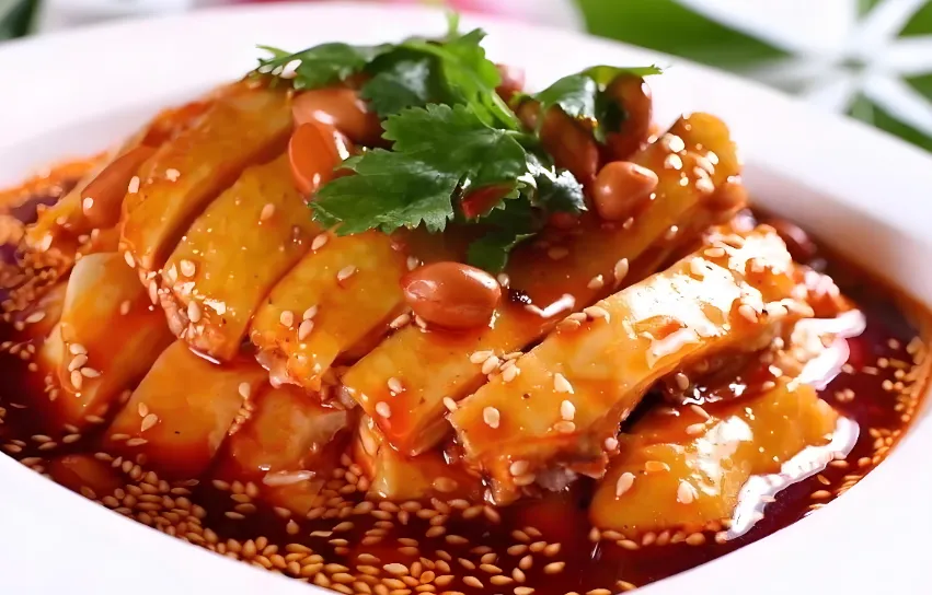 第三美食:古蔺麻辣鸡这可是泸州的招牌凉菜!选用跑山鸡,用几十种中草药卤制,最关键是那个蘸水,香辣味浓,皮肉劲道。现在的古蔺麻辣鸡流派很多,有传统的“白砍鸡”,也有“棒棒鸡”。在古蔺县随便找家苍蝇馆子,30块钱一份,下酒神器!特色: 麻辣鲜香,不上火,一定要加折耳根(鱼腥草),那是灵魂!