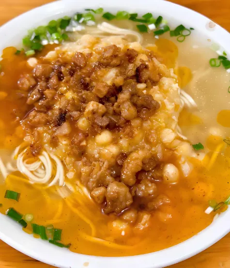 第四美食:叙永豆汤面叙永人的早餐魂!用猪棒骨熬汤,大白豌豆炖得稀烂起沙,浇在面条上,撒上葱花和肉臊,汤头乳白鲜美,面条滑爽。我在当地吃了一碗,连汤都喝光了。这玩意儿看着清淡,实则鲜味炸弹。推荐时间: 早餐或宵夜,人均10-15元。