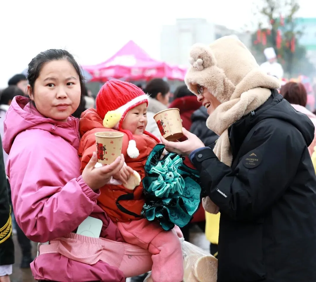 为传递温暖,活动特别设置“敬呈头碗粥”环节,将第一碗福粥敬献给长者、儿童、环卫工人等群体;同时,“五郎”巡游派发便携“暖程粥”与平台福气卡,服务覆盖至当晚末班高铁抵达。书法家现场挥毫赠春联、网红老奶奶温情喊话游子归家等细节,更让整场活动充满人文温度。