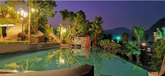 住4A景区,叹自助早餐+晚餐!泡高山温泉+无边泳池+亲子乐园!6人套票799元