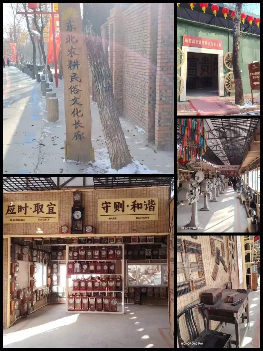 向前走,左边是东北农耕民俗文化长廊,将东北农民曾经生产生活劳动的用品用具非常齐全的展示出来,如果是那些曾经在家农作过或者来东北当过下放知青的人,恐怕会不由自主地伸手去摸一摸那些似乎就是自己用过的“家伙什儿”。