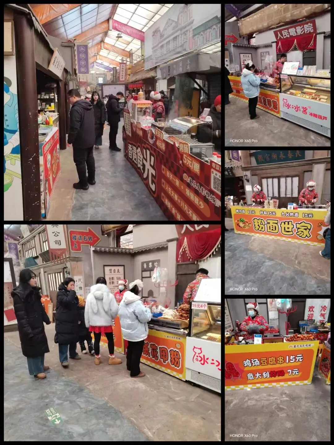 我们走近莲花剧场A区门,有一种来到另一片洞天的感觉,完全是一个闹市小吃街。实惠而美味的小吃,有一些人在排队。大厅里面布置的很有喜庆特色,我忍不住又拍了一些照。
