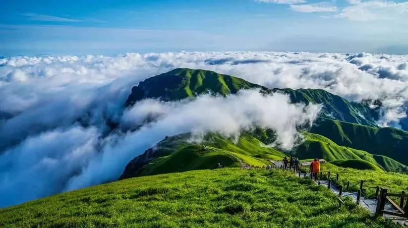 武功山在户外圈子里的名气比在普通游客里大得多,很多人知道这地方是因为徒步穿越,因为那片绵延十万亩的高山草甸,但2-3月的武功山和其他季节完全是两个地方。冬天的草甸是枯黄色的,风一吹整片山头都在晃动,那种苍凉感是夏天绿油油的草甸完全给不了的,很多人觉得枯黄不好看,但这恰好说明了一个认知误区,就是我们对美的理解太单一了,总觉得绿色才是生机,枯黄就是萧条,但你真站在冬天的武功山顶上,看着那些枯草在风里翻滚,远处的山头覆盖着薄雪,你会发现这种萧瑟本身就是一种力量。