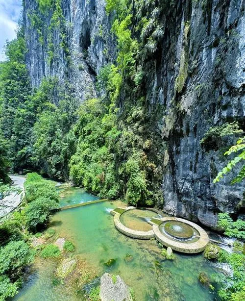 更关键的是水色,冬天的小三峡水是碧绿的,不是那种浅浅的绿,是深到发蓝的绿,因为水流慢了,沉淀物少了,清澈度上来了,你坐船进去,能看到水下的石头和水草,这种透亮劲儿是其他季节看不到的。两岸的山也不是光秃秃的,河池这纬度的冬天树还是绿的,只是绿得更沉了,配上那股碧蓝的水,整个色调就压下来了,不张扬但很稳。