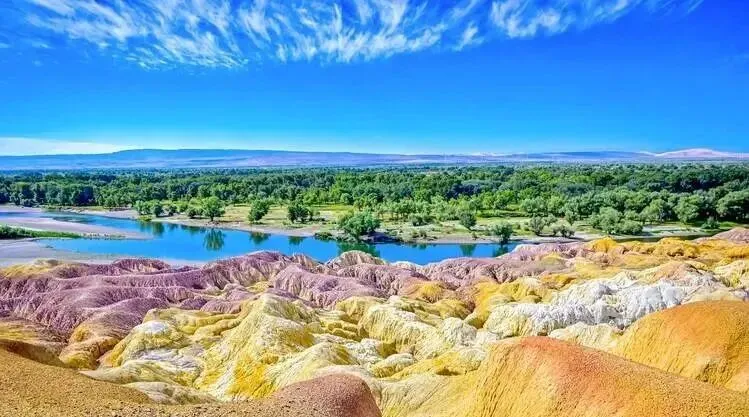 布尔津这边,五彩滩看日落更稳,河谷一层一层,光一打,颜色就活了。
