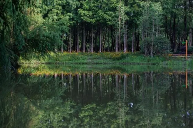 林畔的玉兰湖与蝴蝶湾,点缀着各色花卉,倒映水中,宛如一幅动态的江南水墨画。湖畔设有多处亲水平台与观景亭,登亭远眺,仿佛置身画中,整个湖区美景尽收眼底。