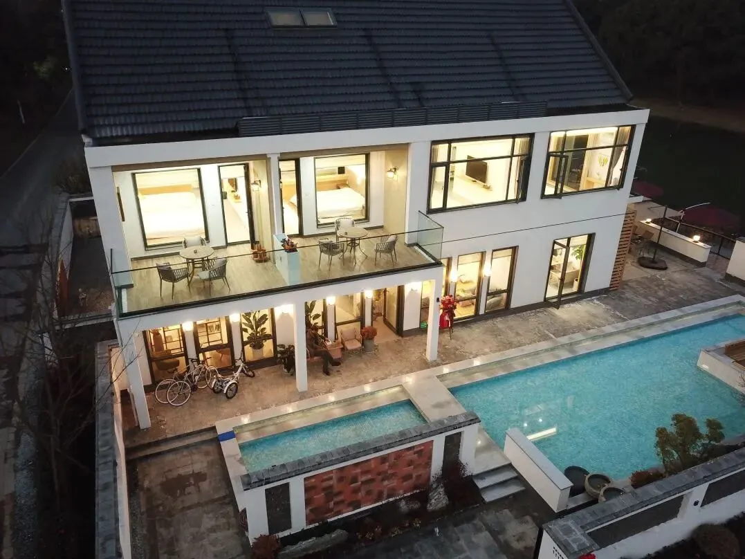 林里·玉兰湖壹号是沪郊首家森林主题民宿,由村民自建房改造而成。500余平方米的空间隐于玉兰湖畔,现代设计与原生态景观巧妙相融,不仅有影音室、茶室、戏水平台,还有儿童游乐区、垂钓池、篮球场、露天烧烤区,满足全家人的度假需求。住在这里,推窗即见翡翠般的湖水与千亩生态林,晨雾氤氲时宛如水墨画;入夜星河低垂,虫鸣伴眠,治愈十足。