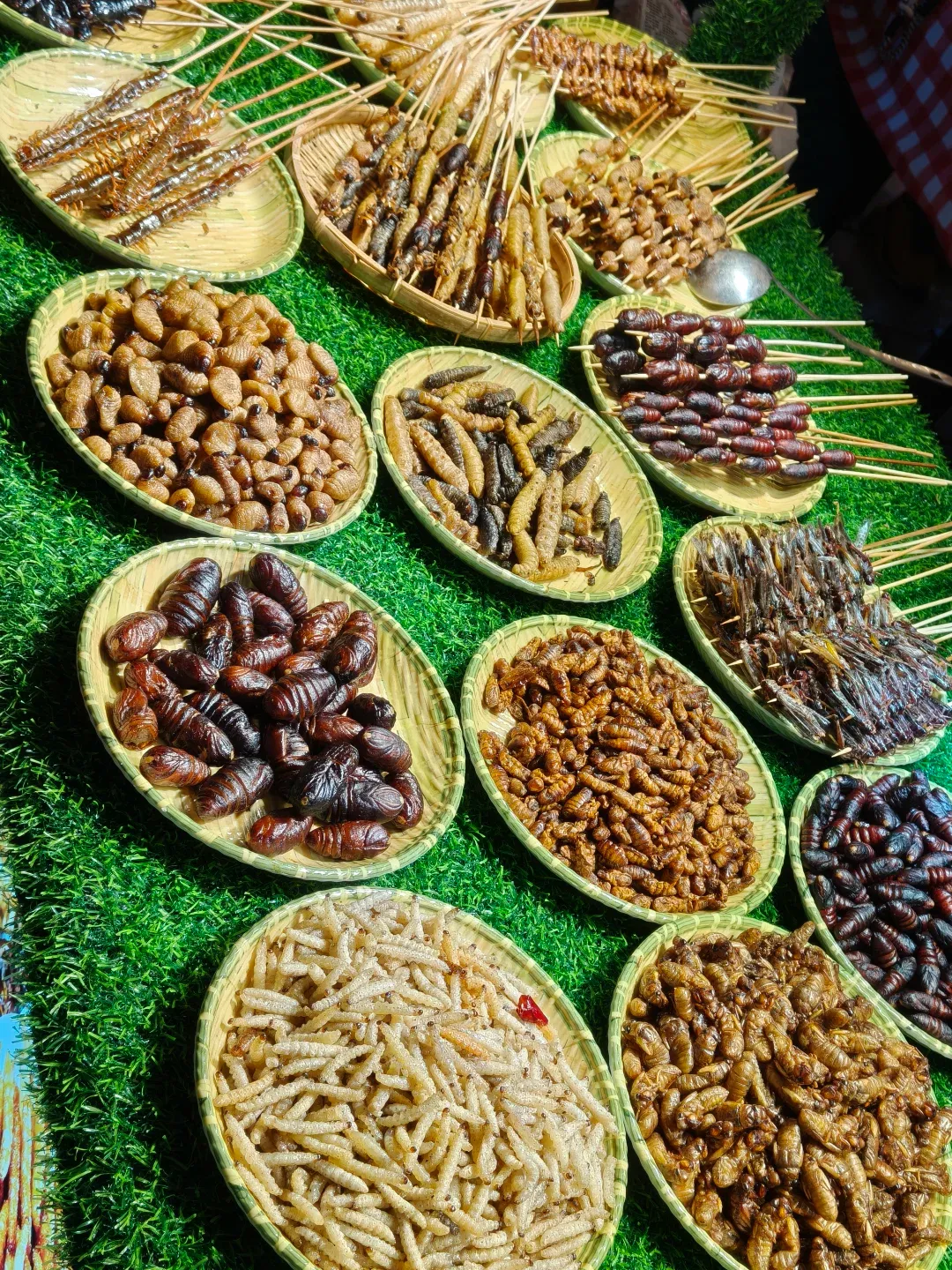 油炸竹虫:高蛋白小吃,外酥里嫩带竹香,敢尝的一定要试,人均 20 元