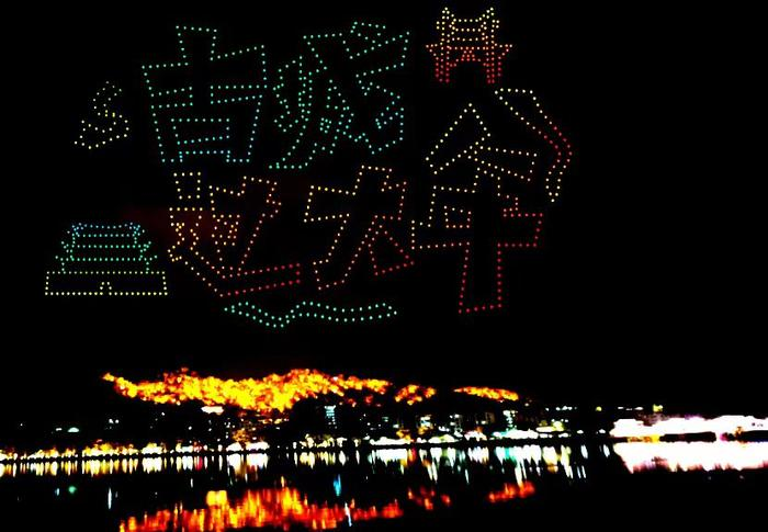 2月14日晚上,在古城韩江段举行无人机表演,用千架无人机演绎体现吉祥寓意及潮州文化元素的字符和图腾,共表演“韩愈”“龙腾盛世”“凤凰腾飞”“潮州,世界美食之都”等14个画面,表演时长15分钟。