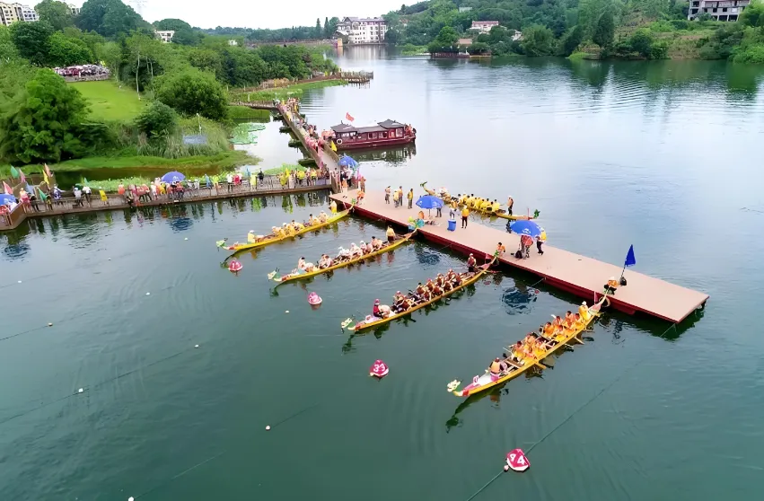 第七站:凤凰湖——川南小西湖凤凰湖的水质极好,岛屿星罗棋布,被誉为“川南小西湖”。2026年新增了“水上飞人”和“摩托艇”,喜欢刺激的别错过。最推荐的是“汉服游湖”,坐在画舫上,穿着汉服品茗听戏,登上“状元阁”俯瞰湖光山色,有一种穿越回江南的错觉。湖畔的“川南民俗村”可以体验竹编灯笼,非常有意思。游玩建议: 傍晚去最好,能看夕阳把湖面染成金色,还能吃“全鱼宴”。穿搭: 飘逸的汉服或新中式,和湖水绝配。