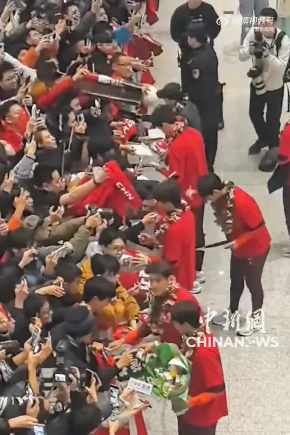 ▲1月26日,夺得U23男足亚洲杯亚军的中国队抵达北京大兴国际机场,球迷热情迎接。