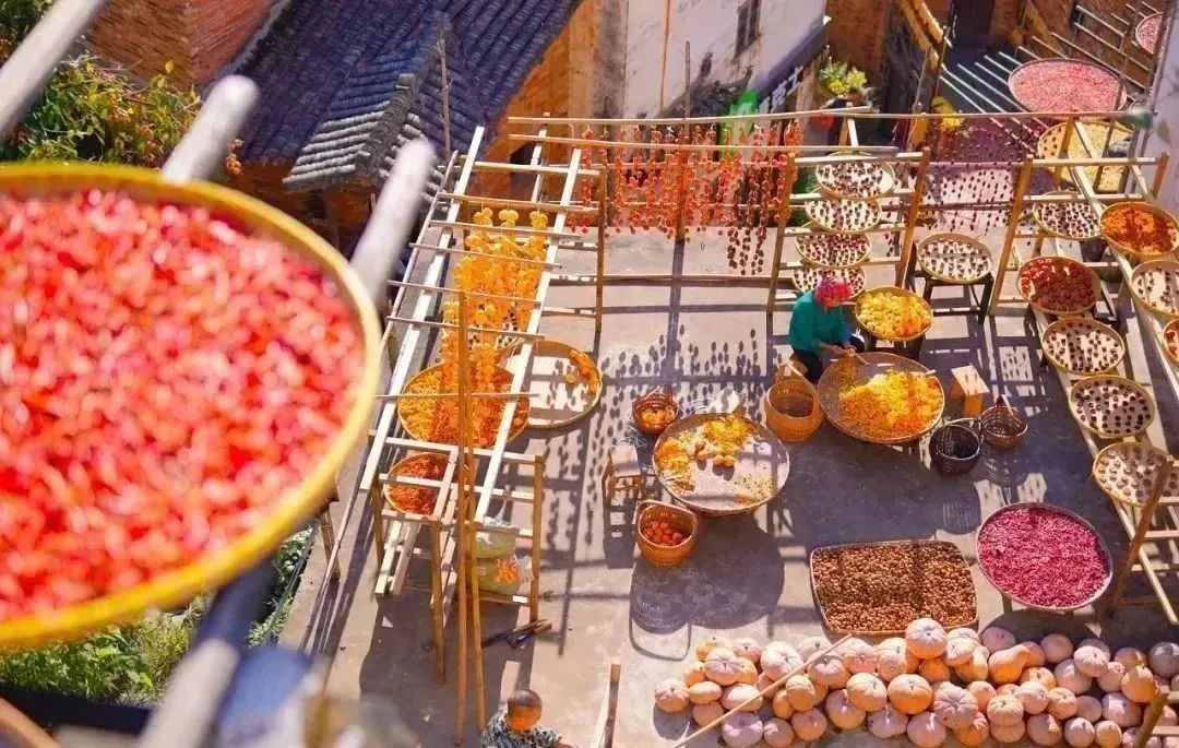 秋晒辣椒 皇菊;冬晒果脯 腊肉