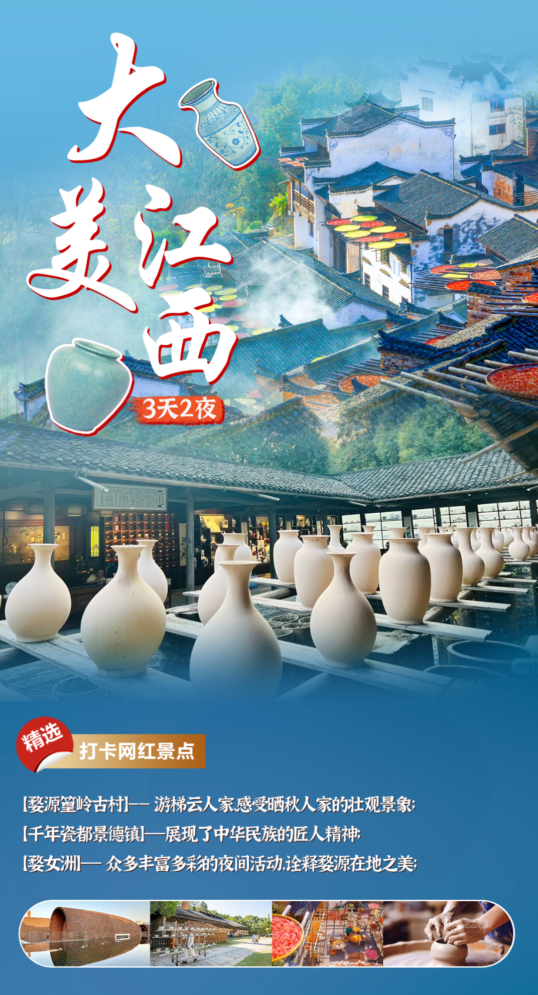 【春节亲子·大美江西】每个景点都值得打卡!走进“瓷都”,开启陶艺体验,赏晒秋人家!
