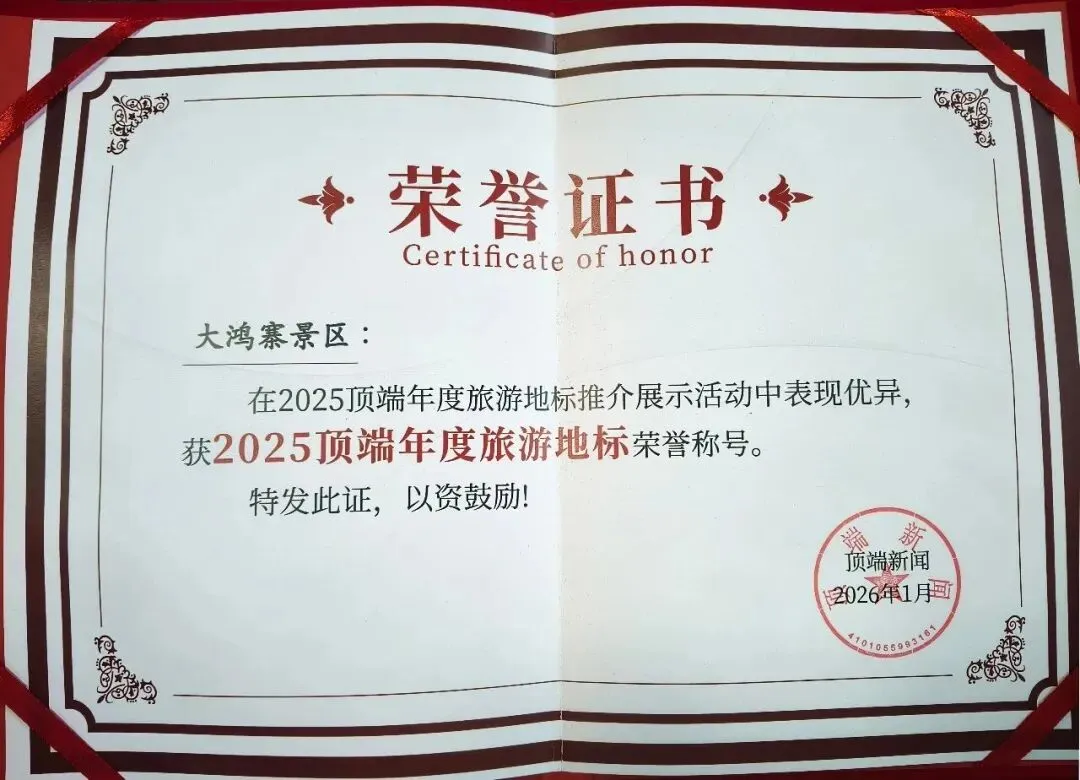 荣获“2025顶端年度旅游地标”称号