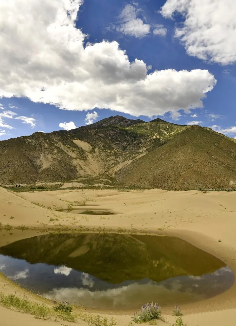 雪山、江水、沙漠,这三个东西按理说不该出现在同一个视野里,但它们就是在那里,而且相处得很自然,这会让你重新理解什么叫"自然",自然不是和谐,不是融洽,而是各种力量在同一个空间里共存,哪怕它们看起来矛盾、冲突、不协调,扎囊沙丘就是在给你演示这套逻辑,冬天去看最合适,因为没有绿色植被遮挡,所有的矛盾都暴露得清清楚楚。