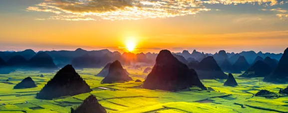 早起至【金鸡峰丛】(电瓶车25元自理)拍摄万亩油菜花海日出,金鸡峰丛是油菜花海的核心景区,站在山顶放眼望去,金鸡峰丛尽收眼底,一个个形态各异,玲珑精美的锥状山头,仿佛刚刚出土的春笋,在不同的季节里,点缀在无边无际的绿色和黄色的海洋中,一年一度的油菜花黄金旅游时节,将可观赏到佳境如画的醉美风光,使您感受到人与自然的和谐;