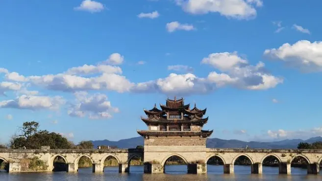 早餐后拍摄前大清乾隆年间的【双龙桥】,双龙桥坐落于建水城西3公里处,是一座三阁十七孔大石拱桥,因两河犹如双龙蜿蜒盘曲而得名;是国家地理杂志云南最佳拍摄点之一;