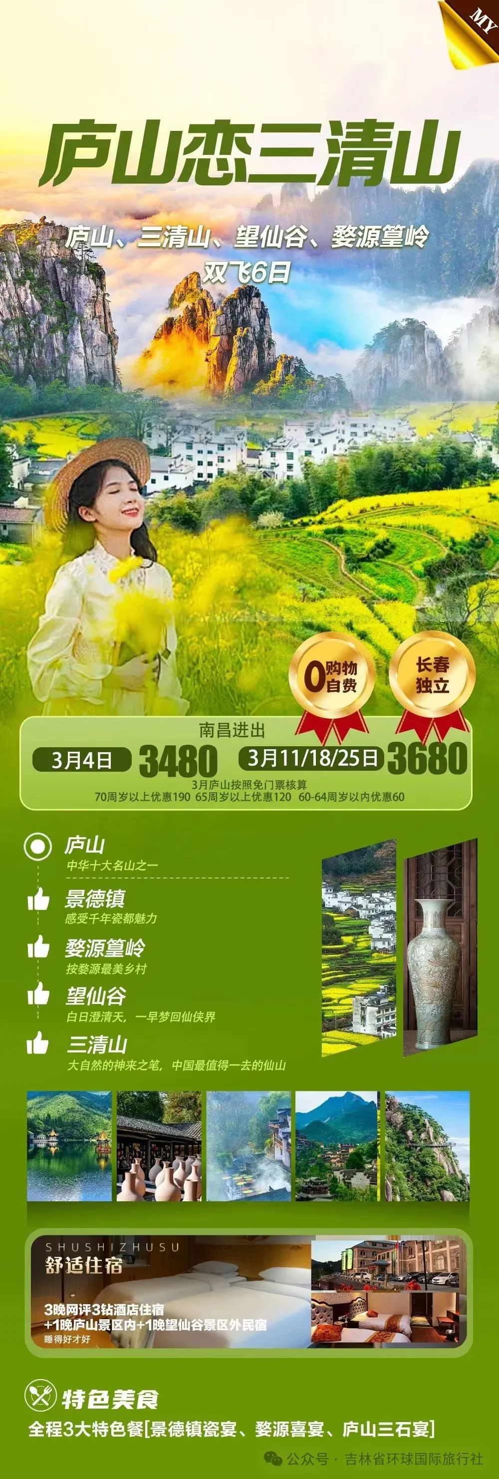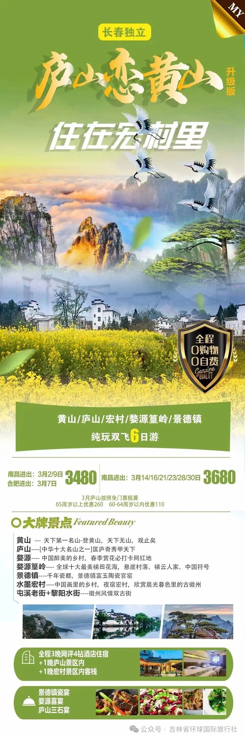 ?3晚4钻+1晚庐山景区+1晚宏村景区