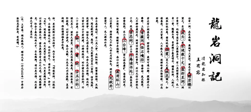据史料记载,明代名臣王源(1376~1455,龙岩人;永乐二年进士,曾任广东潮州知府等职),在龙岩洞壁上石刻的《龙岩记》,记录了龙岩洞胜景及“龙岩”之名的由来。