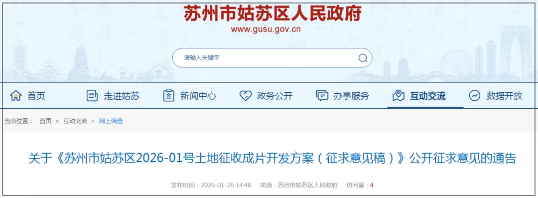 刚刚! 姑苏区发布了2026年1号 土地征收成片开发方案! 同步曝光了2宗优质宅地! 不仅毗邻石湖景区, 而且与立达、沧浪实小一路之隔!