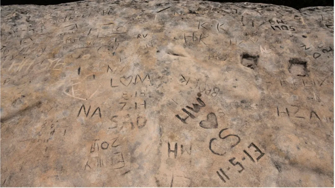 除了人流过载带来的安全风险,林肯岩还面临长期的环境侵蚀问题。数十年来,不断有游客在岩石上刻下姓名或首字母,对岩体造成不可逆的损坏,相关降解担忧持续存在。