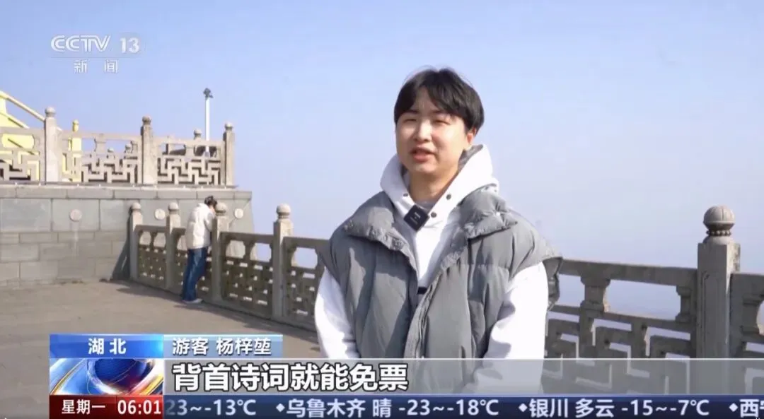 游客杨梓堃表示,比起单纯买门票逛景区,背首诗词就能免票,一下子就让旅游多了点互动感,传统文化也变得特别鲜活。