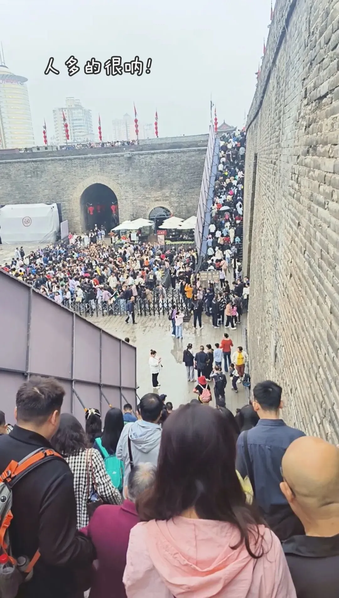 早上九十点吃了酒店早饭,随后早上去上城墙。(城墙走含光门上,可以看城墙里的遗迹,很小,随后可以走城墙去永宁门下就是地铁)城墙人多的像步行街。