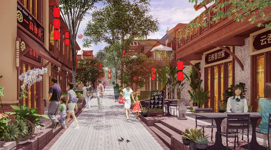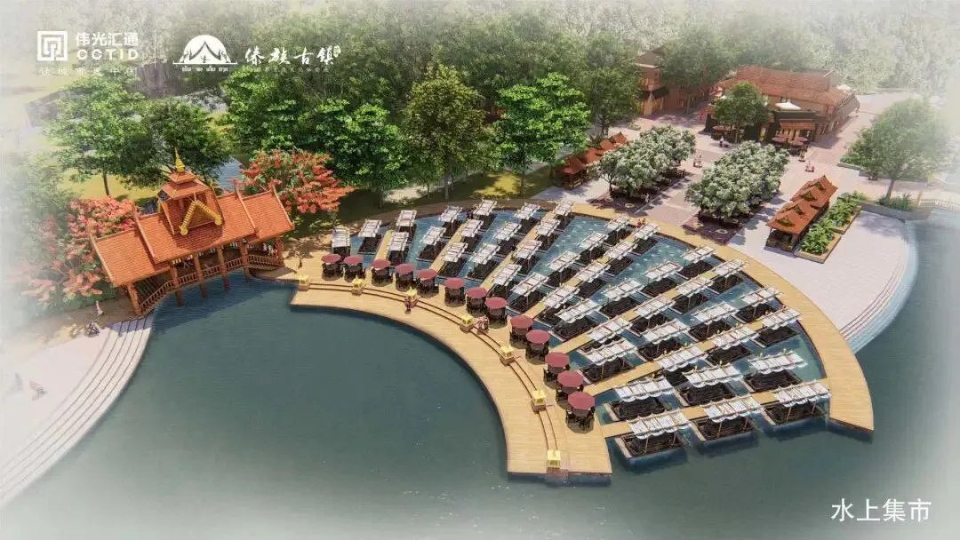 水上集市位于女神湖西侧,用地面积约2500㎡。充分利用南马河水景,设置市集型小船,靠近水系的岸边设置外摆空间,通过水景与外摆空间的结合,吸引人流进入,充分营造休闲商业氛围,打造滇西最有特色的水上集市。