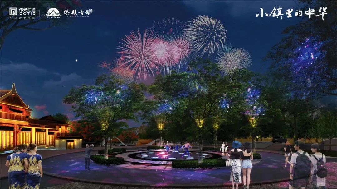 泼水节是傣族最隆重的传统节日之一,每年4月中旬举行。泼水广场约5000㎡,由主景雕塑、旱喷广场、集会广场、观演区等组成,利用临水的优质环境条件,呼应傣族水文化主题,打造泼水节互动广场,彰显水文化在傣族集体记忆和民族价值观中的重要性,同时也满足游客对泼水活动文化的体验。