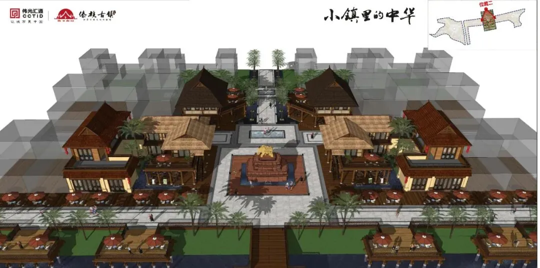 古傣民居建筑博览群位于项目A2地块中部和东部,总用地面积约2500㎡。结合建筑咖啡体验、小型餐饮的功能业态,通过对“版纳竹楼”、“瑞丽竹楼”及传统傣族民居组合形态的深入研究,再现古傣民居组合院落形态,从而成为探究傣族民居起源、变迁和未来发展态势的趣味空间。