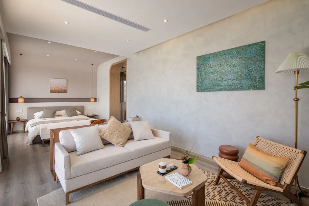 月升之滨共有15间房,侘寂风和极简风的交融贯穿了整个空间。