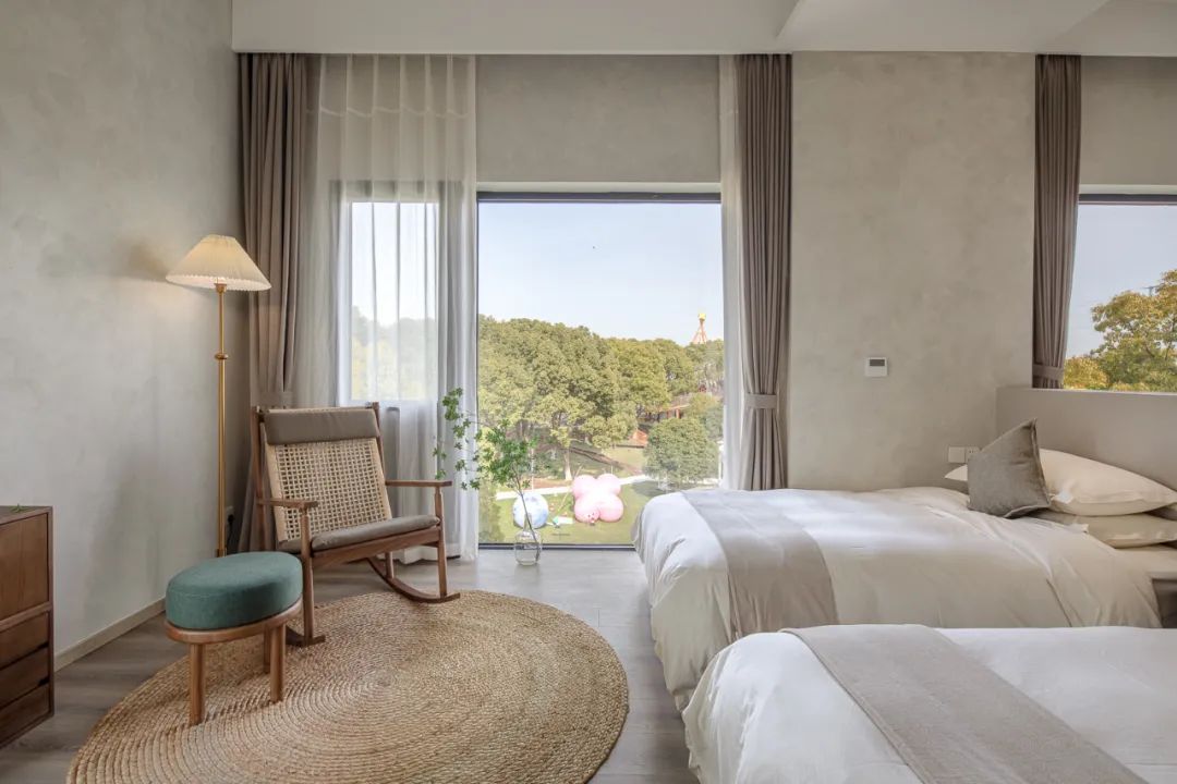 间间配有超大的落地窗,将旖旎的山林风光引入室内,视野开阔,整个空间像是会呼吸般自然~