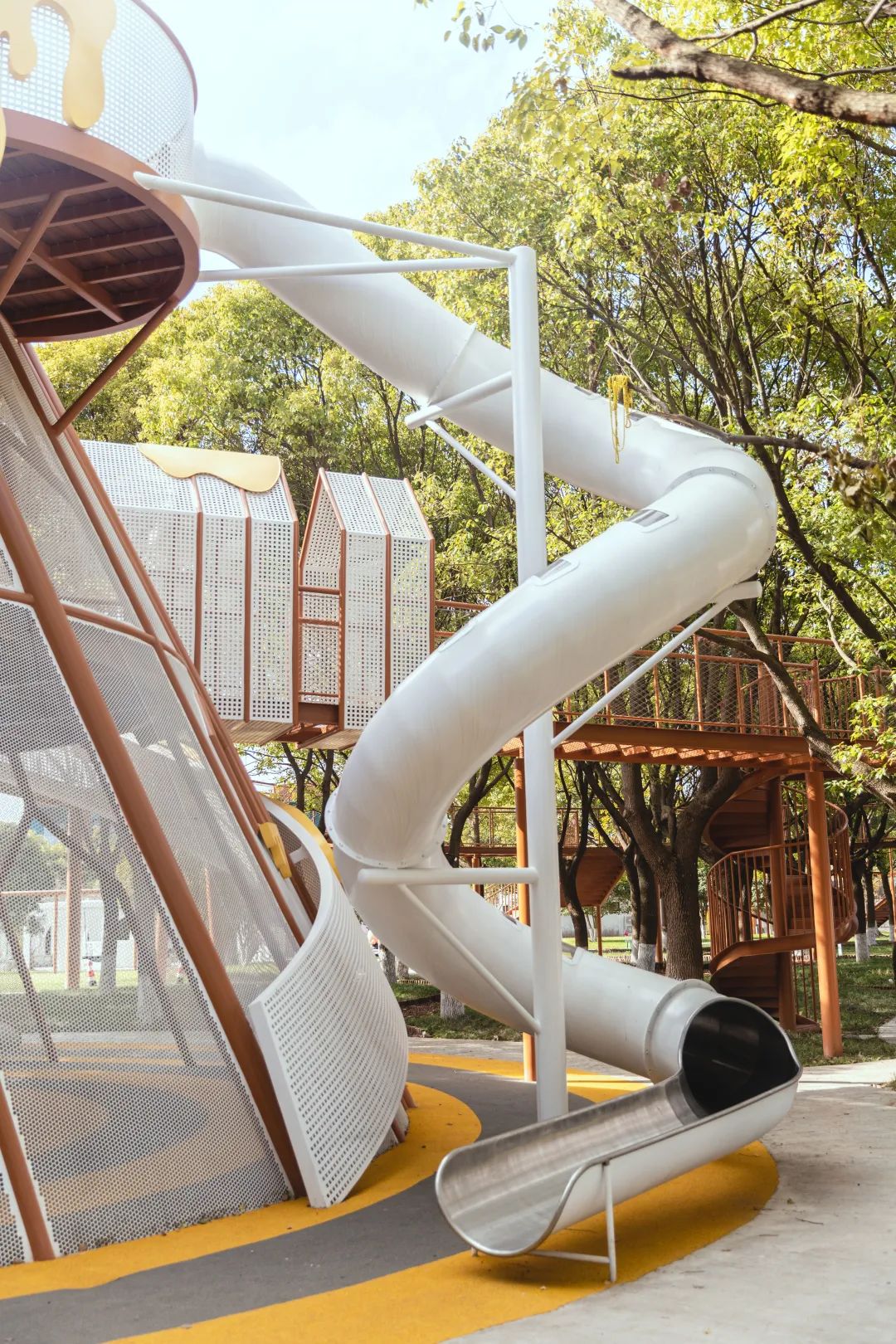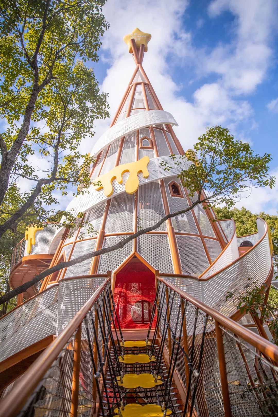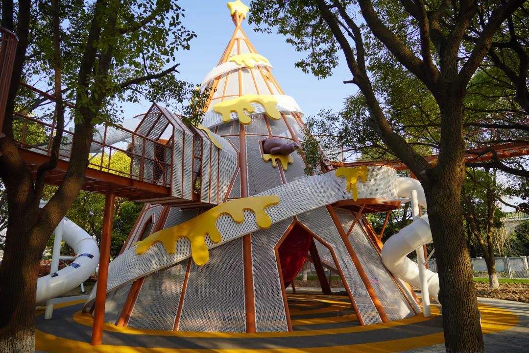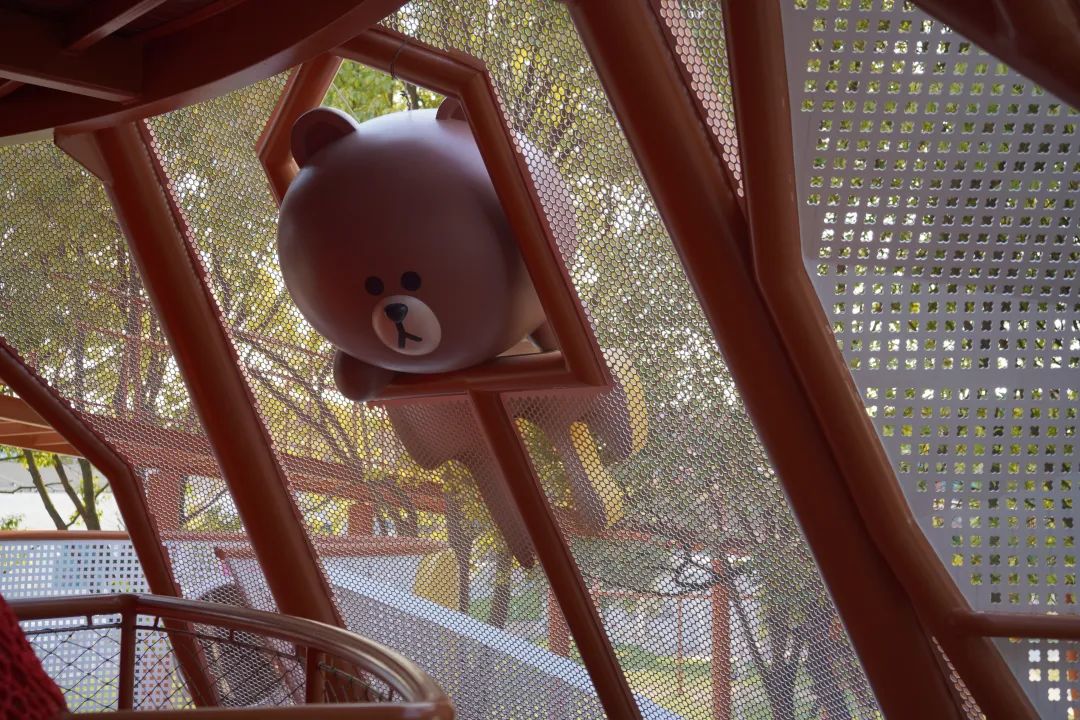 走进内部才发现别有洞天,布朗熊就这么趴在网上别提多有趣了小朋友们可沿着网路攀爬到塔的顶部,俯瞰整个乐园的全貌。