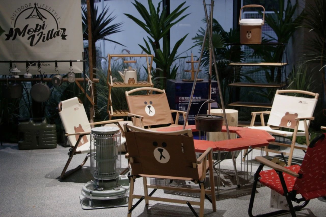 LINE FRIENDS+露营文化而生的〖野邻Mall·可持续户外体验集合店〗,各式的杯子、水壶、帐篷、烧烤架....在这里各种户外露营装备都被展示出来。