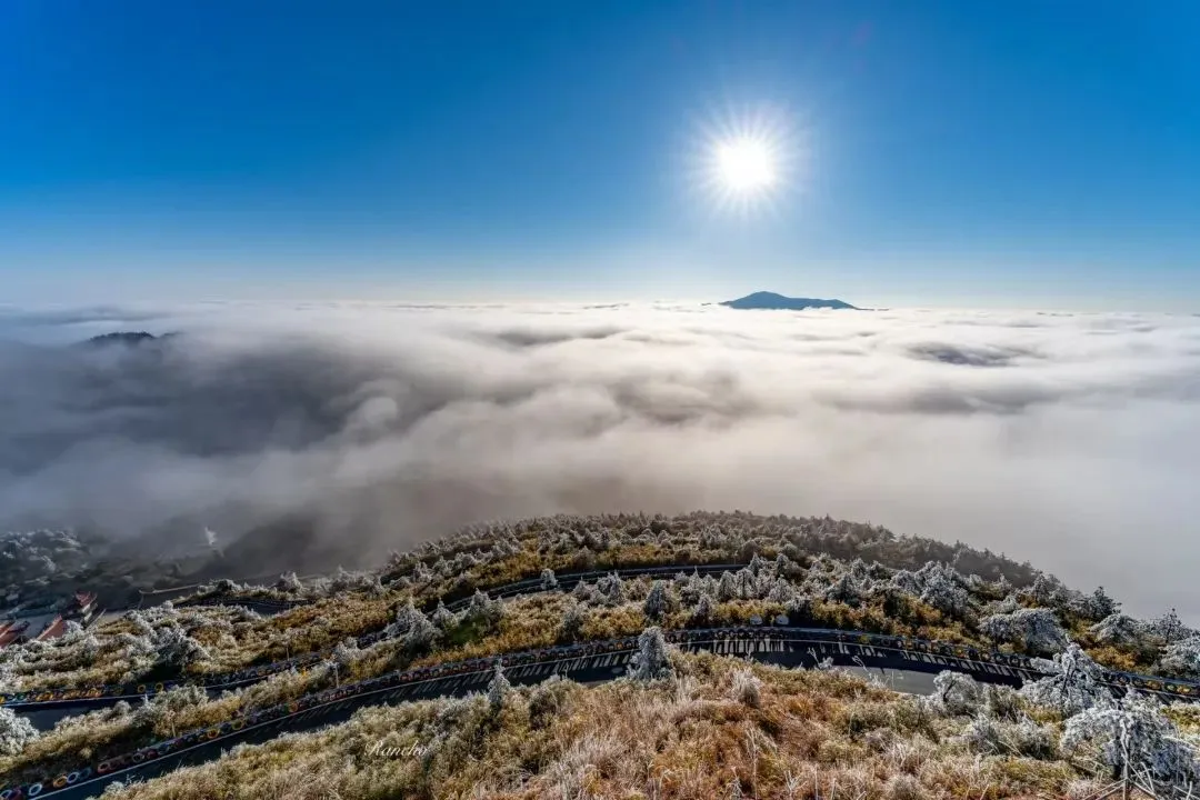 ● 山海碰撞的奇迹:来自台湾海峡的水汽遇上高山冷空气,创造出的雾凇晶莹剔透,形态万千。 ● 一山看尽四季:山脚还是秋·意浓浓,山顶已是琉璃世界,这种奇妙的垂直景观变化,只在九仙山。 ● 仙气十足的日出云海:九仙山有「中土蓬莱第一山」美称。站在1658米的峰顶,看云海翻涌、雾凇闪烁,随手一拍都是仙侠大片。