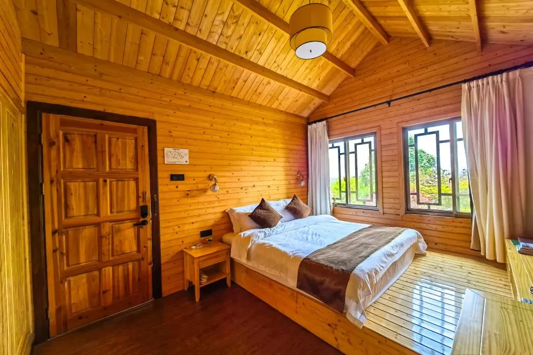 一整片木屋别墅群环湖而建,“负氧离子”达每立方厘米一万余个,在木屋之中推窗见花,煞是好看。(具体以酒店安排为准)