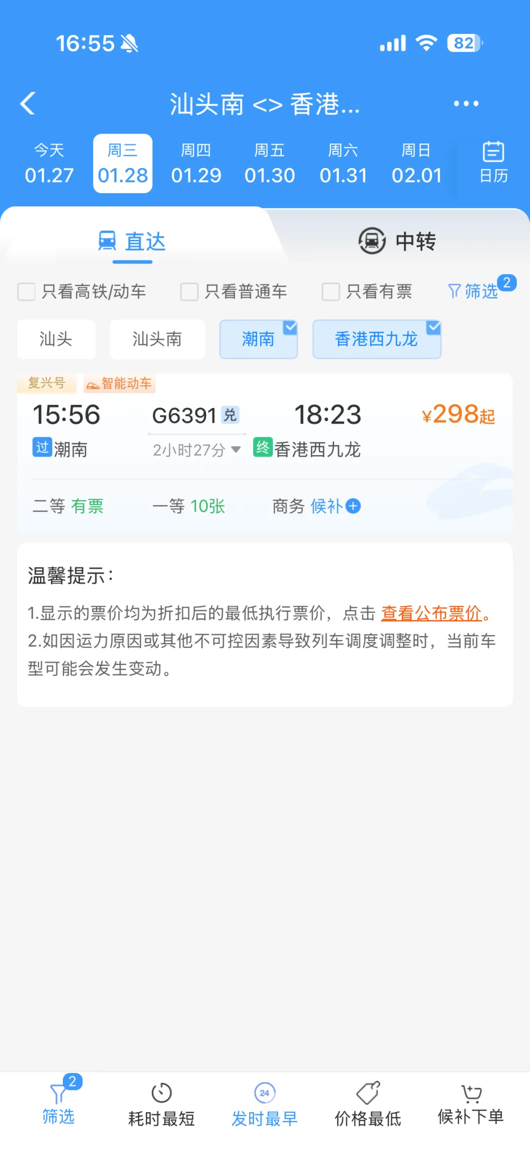 ✅经停站:潮南→惠来→陆丰东→陆丰南→汕尾→惠州南→深圳北→香港西九龙