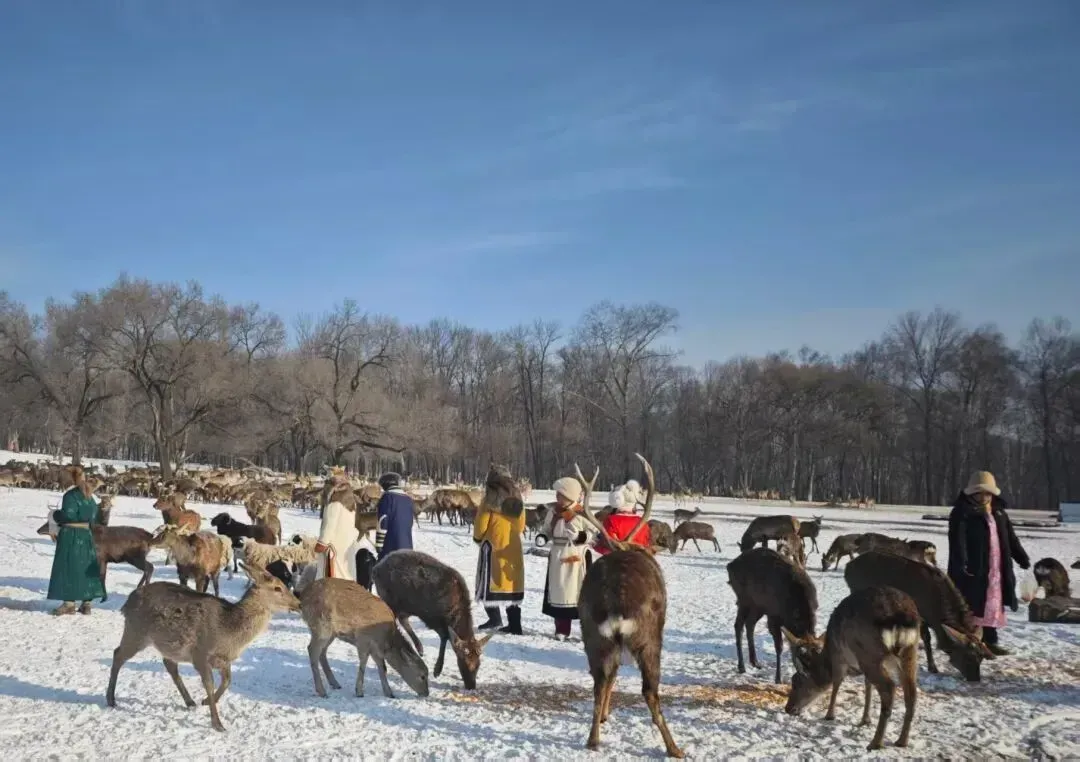 景区内,游客不仅与温顺的梅花鹿亲昵互动,还能感受雪地摩托风驰电掣的激情,以及蒙古包内围炉煮茶及民族歌舞带来的融融暖意,冬日魅力与冰雪激情充分彰显。
