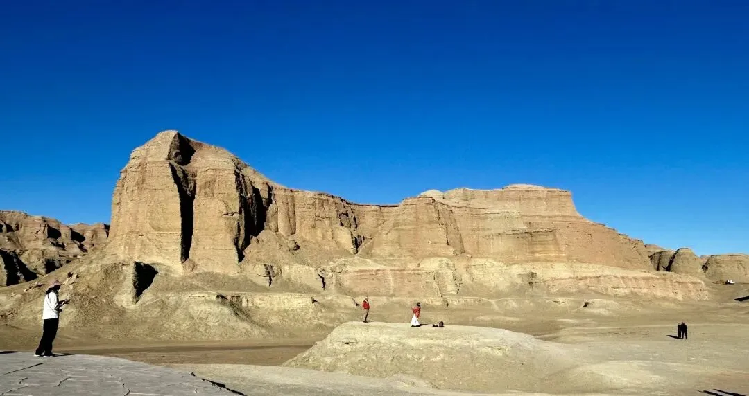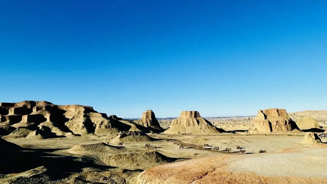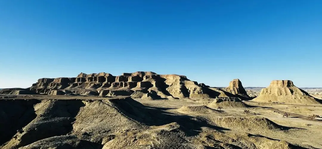 最令人称奇的,是那座形似埃及的“狮身人面”,表情威严而模糊;转个角度,又仿佛是是一艘远航的船舰,舰首劈开凝固的土浪,驶向金色的海洋。这些大地“雕塑”天然偶成,惟妙惟肖,让人不得不惊叹于造物主之神力。