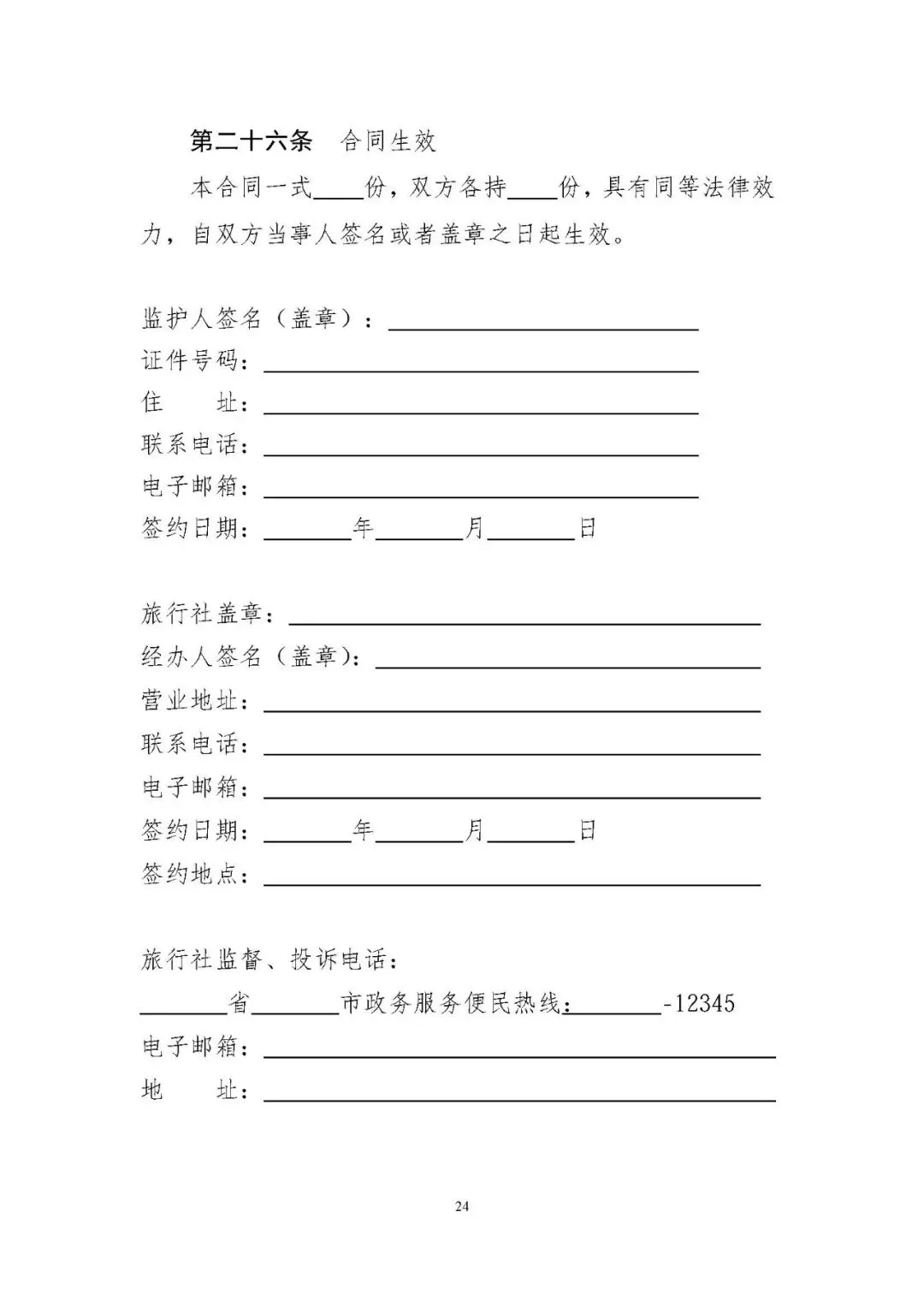 现将2026年版团队旅游合同(示范文本)印发给你们,请各地文化和旅游行政部门做好示范文本推行工作,会同市场监管部门引导规范旅行社合同行为,防范和纠正不公平格式条款,引导企业良性竞争,进一步优化旅游市场消费环境。本合同文本作为推荐性示范合同文本向社会公开,可登录文化和旅游部政府门户网站(https://www.mct.gov.cn)或市场监管总局政府门户网站(https://www.samr.gov.cn)自行下载。在推行、使用中若发现问题,要认真研究解决,并及时报告。